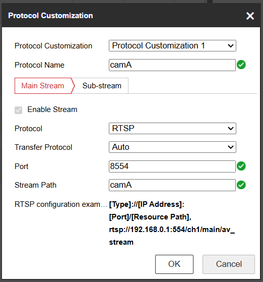 If everything is set up correctly, Go2RTC will now split and restream your camera feed via port 8554. You can then go to your Hikvision DVR interface, add a custom camera protocol, and point it to the new stream.